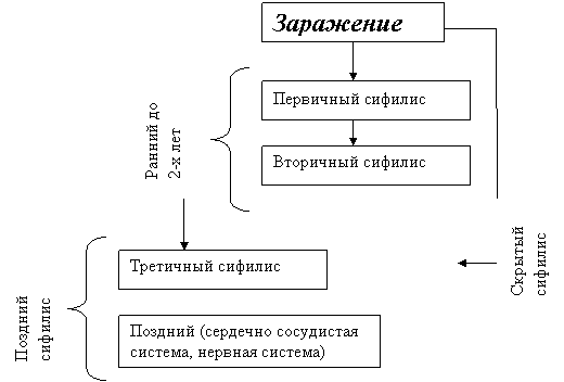 Схема. Течение приобретенного сифилиса.