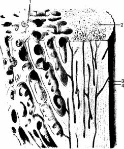 На поверхностях каждой кости имеются неровности: здесь начинаются или прикрепляются мышцы и их сухожилия, фасции, связки. Эти возвышения, выступающие над поверхностью кости, называют апофизами (от греч. apophysis - вырост). К ним относятся: бугор, tuber, бугорок, tuberculun гребень, crista, отросток, processus. На участке, где мышца прикрепляется своей мясистой частью, определяются углубления: яма, fossa или fovea, ямка, ямочка, fossula. Поверхности кости ограничены краями (margo - край). На некоторых костях, к которым прилежит нерв или кровеносный сосуд, имеет бороздка, sulcus. В местах прохождения через кость сосуда или нерва образуются канал, candlis, канадец, canallculu. щель, fissura, вырезка, incisura. На поверхности каждой кости, особенно с внутренней ее стороны, видны точечные отверстия уходящие в глубь кости - питательные отверстия – foramina nutricia.