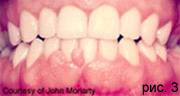 Эта форма гингивита связана с половыми гормонами, и поэтому встречается в пубертатный период (полового созревания), беременности(рис.2), а также после орального приема контрацептивов или при стероидной терапии на фоне хронического простого гингивита, характеризующегося приступообразными обострениями.