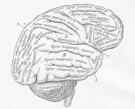 10. Ядро двигательного анализатора артикуляции речи (речедвигательный анализатор) располагается в задних отделах нижней лобной извилины. Это ядро граничит с теми отделами предцентральной извилины, которые являются анализаторами движений, производимых при сокращении мышц головы и шеи. Это и понятно, так как в рече-двигательном анализаторе осуществляется анализ движений всех мышц: губ, щек, языка.