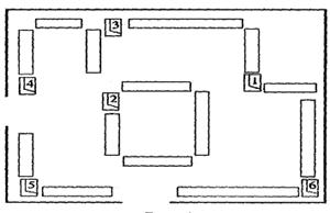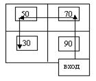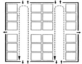 2. Боксовая планировка (трек, петля) используется, как правило, в крупных универсальных магазинах, где часто торговля ведется через прилавок. В таком случае торговый зал разбит на отделы, секции, павильоны, которые изолированы друг от друга (рис. 2.2.4.)