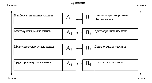 Рис. 2. Группировка статей актива и пассива для анализа ликвидности баланса.
