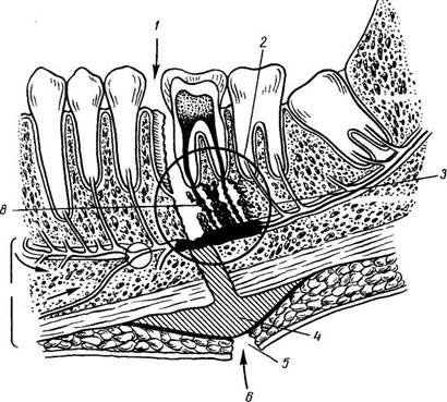 Инфицирование костной раны при переломе нижней челюсти может происходить через поврежденные слизистую оболочку рта и кожу (рис. 59).