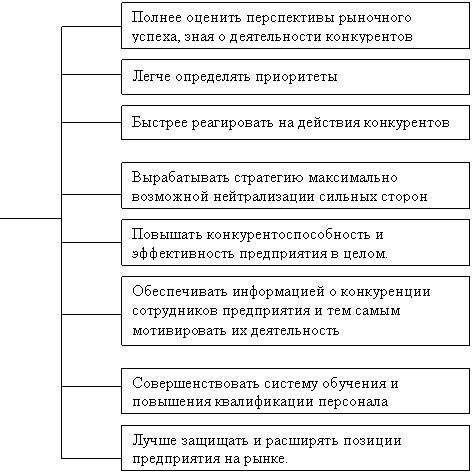 Анализ конкурентов и выработка конкретных действий в отношении главных соперников часто приносят больше пользы, чем даже существенный реальный рост на данном сегменте рынка. Зная сильные и слабые стороны конкурентов, можно оценить их потенциал, цели, настоящую и будущую стратегии. Это позволит стратегически точно сориентироваться на то, где конкурент слабее. Таким образом, предприятие может расширить собственные преимущества в конкурентной борьбе.