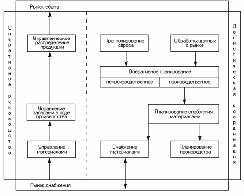В рамках координационных функций логистики выделилось еще одно из ее направлений – оперативное планирование, продиктованное стремлением сократить запасы, не снижая эффективности производственной и сбытовой деятельности фирм. Суть его состоит в том, что на основании прогноза спроса, корректируемого позднее при поступлении реальных заказов, разрабатываются графики перевозок и в целом порядок управления запасами готовой продукции, который в итоге и определяет планирование производства, разработку программ снабжения его сырьем и комплектующими изделиями.