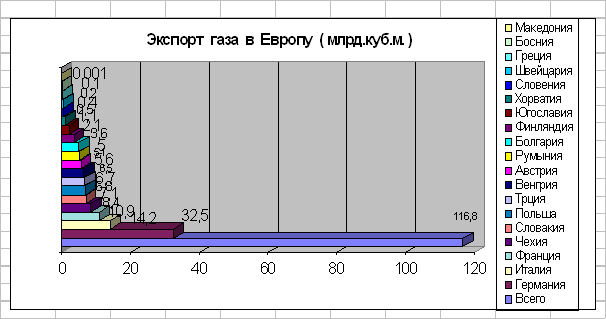 В 1997 г. РАО «Газпром» поставило природный газ 19 европейским странам в объёме 116,8 млрд.м3.