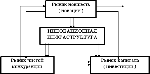 Ранее отмечалось, что от новшества как результата научной и научно технической деятельности до нововведения как общественного признания новых технологий, товаров, видов услуг, новых методов и т.п. осуществляется процесс с затратами времени и ресурсов. Рынок чистой конкуренции выступает в этом процессе с двойственных позиций, которые представляют собой единство и борьбу противоположностей.