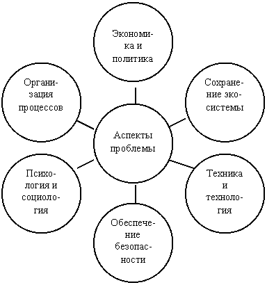 При применении комплексного подхода должны учитываться технические, экологические, экономические, организационные, социальные, психологические, при необходимости и другие (например, политические, демографические) аспекты менеджмента и их взаимосвязи. Если упустить один из обязательных аспектов менеджмента, то проблема не будет полностью решена. К сожалению, на практике не всегда соблюдается это требование. Например, при строительстве новых предприятий социальные вопросы иногда откладываются «на потом», из-за чего объект либо совсем не вводится, либо используется частично. При проектировании новых орудий труда показателям экологичности и эргономичности иногда уделяется второстепенное внимание, поэтому они сразу становятся неконкурентоспособными. При формировании новых или реорганизации старых структур не всегда учитываются социальные и психологические аспекты. Эффективность инвестиционных проектов будет мизерной либо отрицательной, если при блестящем решении, например, технических проблем будут упущены другие аспекты менеджмента. Схема применения к менеджменту комплексного подхода показана на рис. 1.