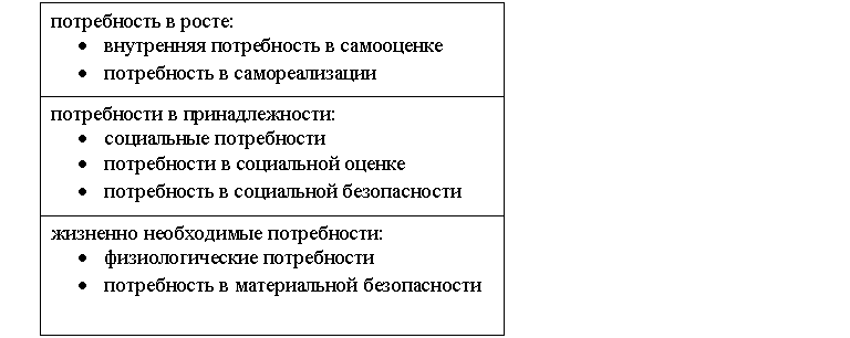 Рис. 3 Иерархия потребностей по К. Алдерферу.
