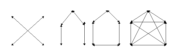 Особенно важно знание типов коммуникационных сетей или структур коммуникаций в группе. Среди существующих коммуникационных сетей для групп разной численности можно выделить четыре основных типов: колесо, цепь, круг, сложный круг (или всеканальная) (рис. 2 ).