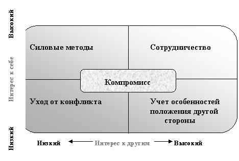 Здесь важна методика преодоления разногласий, разрядка обстановки, подавление зарождающихся конфликтов, чтобы они не переросли в серьезные столкновения. Важно достигнуть соглашения, учитывающего интересы каждой из сторон.