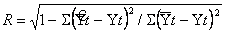 Если требуется определит прогнозное значение объема перевозок груза на заданной прогнозируемый периуд надо подставить вместо фактора времени t, соответствующий значение заданного периуда прогнозируемый t = n + 1, n + 2, ., n + T и определить объем перевозок грузов на соответствующий прогнозируемый периуд. Ошибка прогноза объема перевозок грузов определяют по формуле: