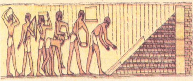 Для возведения небольших объектов использовали строительные леса и подмостки, при крупных строительных работах, как, например, сооружение пирамид, и в более поздние времена при постройке храмов и т. д. пользовались для доставки необходимых материалов специальными наклонными платформами. Эти платформы наращивали по мере роста сооружения. После окончания строительных работ эти платформы разрушались. Одновременно с возведением здания его внутренние помещения заполнялись песком. Окончательные отделочные работы производились сверху вниз. По мере их окончания песок удалялся.