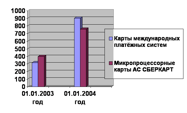 Наряду с традиционными формами обслуживания населения Сбербанк России активно внедряет и развивает современные банковские технологии. Его доля на рынке международных и Российских банковских карт оценивается 40-45% в части эмиссии банковских карт и около 35% по развитию сети приёма карт. Общее число распространённых банковских карт на конец 2003 года превысило 6,5 млн., а объём привлечённых средств на счета банковских карт составил в эквиваленте 10,2 млрд. руб.
