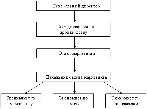 Так как предприятие ОАО «Редуктор» сравнительно невелико, структура маркетинга довольно проста и имеет следующий вид: