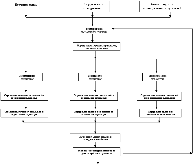 Всякое изделие обладает комплексом свойств, определяющих степень его пригодности к использованию в конкретных условиях. Для того чтобы объективно оценить конкурентоспособность своего товара, производитель должен при анализе использовать те же критерии, которыми оперирует потребитель. Только в таком случае можно ожидать, что оценка, данная товару производителем, совпадает с мнением покупателя. Однако для производителя этот вопрос стоит несколько шире, прежде всего он должен оценить принципиальную возможность реализации своего товара на данном рынке, т. е. уровень нормативных параметров.