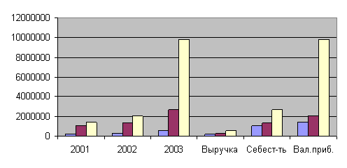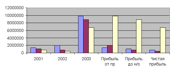 На основе анализа отчета о прибылях и убытках видно, что предприятие имеет довольно прогрессирующую кривую развития, и похоже не собирается сдавать свои позиции. Теперь попробуем отследить эти изменения графически ( диаграмма 2.1.)