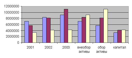 Исходя из всего вышеперечисленного можно сделать вывод : что предприятие свои финансовые ресурсы в большей степени направляет в оборотные активы, а точнее в сырьевые запасы ( 2001 год – 35 %, 2002 год – 39 %, 2003 год – 45 % ), затем вкладывает во внеоборотные активы, а точнее в основные средства ( 2001 год – 44 %, 2002 год – 41 %, 2003 год – 37 % ) остатки финансовых ресурсов ОАО«Анкер» вкладывает в увеличение капитала ( 2001 год – 21 %, 2002 год – 20 %, 2003 год – 18 % ).