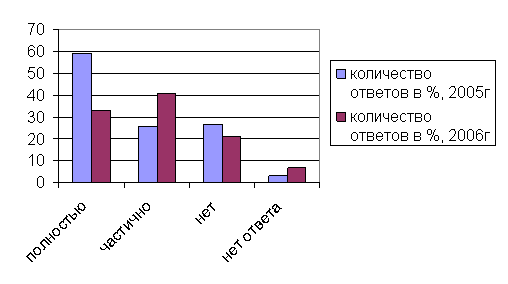 Сравнение результатов опроса абонентов 2005 г. и 2006 г. Представлены в диаграммах 3-7.