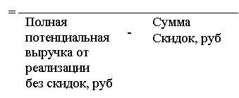Можно также произвести расчет среднего процента скидки в цене реализации по следующей формуле: