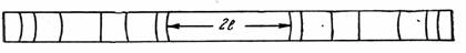 ( Расстояние между симметричными линиями на рентгенограмме, как дуга окружности, равно радиусу окружности R, умноженному на соответствующий центральный угол 4 Q, т. е. угол при вершине конуса дифракционных лучей.) 2L—расстояние между симметричными линиями, измеренное по' экваториальной лилии рентгенограммы; R—радиус цилиндрической фотопленки; Q —угол скольжения (в радианах).