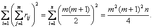 Рассмотрим вначале суммированные по i при фиксированном j. Это есть сумма рангов для j-го эксперта. Поскольку эксперт использует для ранжировки натуральные числа от 1 до n, то, как известно, сумма натуральных чисел от 1 до n равна [12]