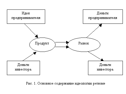 Многие кредиторы и инвесторы любят читать краткое содержание бизнес-плана, объем которого не превышает двух листов. Это дает им возможность увидеть важные особенности и преимущества данного проекта перед другими. По содержанию резюме инвестор часто судит о том, стоит ли ему терять свое время и читать бизнес-план до конца, поэтому необходимо четко и весьма убедительно изложить основные положения предлагаемого проекта, чтобы кредиторы и инвесторы смогли получить ответы на вопросы: «Что они получат в случае успешной реализации этого бизнес-плана?» и «Каков риск потери ими денег?» Т.е. схема (см. рис. 1.) того, что должно показать резюме бизнес-плана, выглядит следующим образом [11, с. 58]: