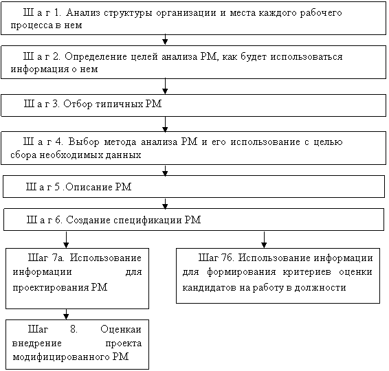• для проектирования рабочего процесса (шаг 7а) и выбора оптимального сочленения рабочих элементов, обязанностей и задач работника. Спроектированные варианты тщательно проверяются в ходе 8-го шага с целью выявления и устранения недостатков;