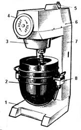 На передвижном кронштейне крепится съемный бак, который может перемещать его в вертикальном направлении при помощи рукоятки механизма подъема. Внутри корпуса смонтирован привод машины, который состоит из двигателя, клиноременного вариатора скоростей, зубчатых передач и планетарного редуктора. Сменные механизмы взбивателей крепятся к рабочему валу с помощью штифта и фигурного выреза. На боковой стенке машины установлен автоматический выключатель для пуска и остановки двигателя.