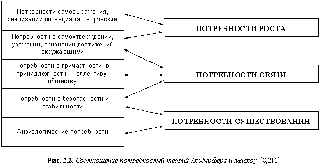 Группы потребностей данной теории удобно рассматривать с точки зрения их соответствия потребностям теории Маслоу (рис. 2.2.).