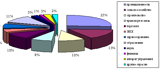 Из табл. 2следует, что в 2003 г. по сравнению с 2000 г. заметно сократился удельный вес занятых в промышленности, строительстве, науке и возрос удельный вес занятых в сельском хозяйстве, торговле, транспорте и связи, в ЖКХ, здравоохранении , в кредитовании, т.е. в основном (за исключением сельского хозяйства) в непроизводственной сфере.