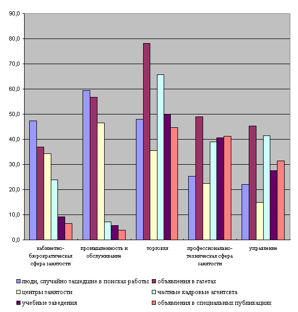 - существует также возможность использования внешних источников, включающих в себя: случайно заходящих в поисках работы людей, использование услуг различных агентств, объявления в средствах массовой информации и т.д.