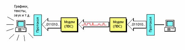 3) Протоколы локальной сети. Вообще, протоколы – это программы, которые обеспечивают транспортировку данных между устройствами, подключенными к сети. На рисунке схематично показан принцип действия любого протокола, локальной сети или сети Internet: