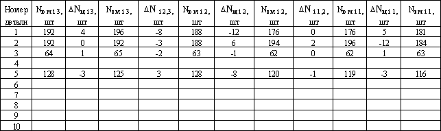 Но в вышеперечисленных формулах не учтено, что детали обрабатываются партиями. С учетом партионности количество деталей, подлежащих запуску и выпуску за месяц, рассчитывается как Nз мil - nз il 1 N*з м il = ] ---------- [ Ч nil + nз il 1; n il