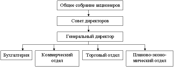 Во главе управления данным предприятием стоит общее собрание акционеров, которое выбирает Совет директоров, решающих производственные и управленческие вопросы в течение года. Совет директоров возглавляет генеральный директор, которому непосредственно подчиняются заместитель директора по торговле, коммерческий директор, главный бухгалтер, главный экономист. В ведении заместителя директора по торговле находятся оптовая и розничная сети ЗАО ПКФ «Андромеда». Коммерческий директор руководит деятельностью коммерческого отдела, главной функцией которого является сбыт услуг. В подчинении у главного бухгалтера находится бухгалтерия, осуществляющая бухгалтерский и оперативный учет. Главный экономист занимается анализом и планированием финансово – хозяйственной деятельности предприятия.