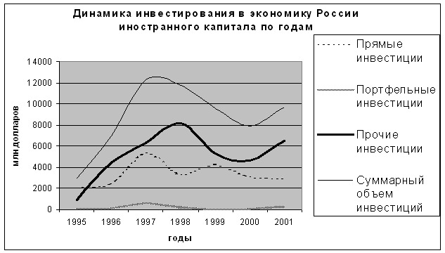Как мы видим из этой таблицы, своего пика инвестирование достигло в 1997 году, причем портфельные инвестиции также достигли в этом году своего максимума, как в абсолютном показателе, так и в относительном (5,5%).