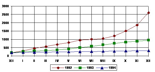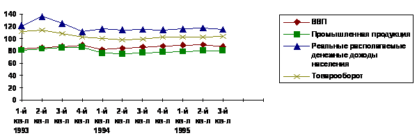 Динамика основных показателей, характеризующих экономическое положение России в 1993-1995 годах[6]