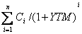 , — платеж по облигации в момент времени Тi; YTM = r + Risk Premium, где r — безрисковая процентная ставка.