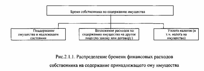 Общее учение о праве собственности в гражданском обществе гласит, что принадлежащее собственнику имущество для него не только благо, но и соответствующее бремя. Норма о бремени содержания имущества собственником закреплена в ст.210 ГК РФ (рис.2.1.1.).
