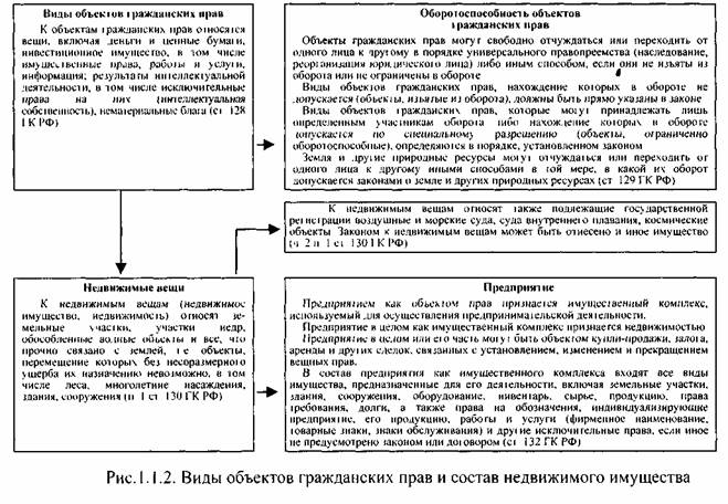 Термин «имущество» применяется в гражданском праве неоднозначно. В основном под ним понимают вещь или определенную совокупность вещей, а также и имущественные права. Состав объектов гражданских прав, в соответствии с положениями ст. 128 ГК РФ, представлен на рис. 1.1.1. [116, с.23].