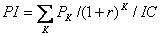 Этот метод является следствием метода расчёта NPV. Индекс рентабельности (PI) рассчитывается по формуле: