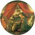 По возвращении из Рима Боттичелли написал ряд больших картин религиозного содержания и среди них несколько тондо, где тонкость чувств художника смогла полностью проявиться в распределении форм на плоскости. Тондо предназначались для украшения апартаментов флорентийской знати или для коллекций произведений искусства. Первое известное нам тондо, датируемое семидесятыми годами, - это "Поклонение волхвов" (Лондон, Национальная галерея), возможно служившее крышкой стола в доме Пуччи. Начиная с этой еще незрелой работы, где искажение перспективы выглядит оправданным, если картину расположить горизонтально, Боттичелли демонстрирует "софистический", трезвый и беспокойный подход, описанный Вазари: круглая форма дает художнику возможность проводить оптические эксперименты. Примеры тому - "Мадонна Магнификат" и "Мадонна с гранатом" (обе в Уффици). Первая, 1485 года, благодаря особому изгибу кривых линий и общему круговому ритму производит впечатление картины, написанной на выпуклой поверхности; во второй же, созданной в 1487 году для Зала заседаний суда палаццо Синьории, использован обратный прием, создающий эффект поверхности вогнутой.