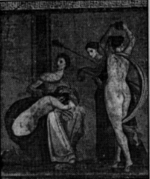 Рис. 12. Участница мистерий и танцовщица. Деталь росписи виллы Мистерий. Фреска.