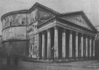Однако самым знаменитым и выдающимся сооружением эпохи Адриана является Пантеон. Пантеон (храм всех богов) в основе своего плана также имеет круг, причем фундаментом зданию послужил огромный бассейн - нимфеум, оставшийся на этом месте от снесенных терм Агриппы. Массивные цилиндрические стены облегчены за счет устроенных в их толще парадных ниш, служивших в древнеримское время алтарями. На верхнюю часть стен краями опирается гигантский купол, своим пролетом (43 м) перекрывающий без единой опоры все внутреннее пространство Пантеона, причем в самом центре купола имеется небольшое круглое отверстие для освещения внутренности храма. Постройка Пантеона датирована 125 г. н. э., а его купол, изготовленный из бетона и кирпича, до сих пор считается настоящим архитектурно-инженерным шедевром. Подобно остальным римским храмам, Пантеон был богато украшен и производил своим монументальным величием неизгладимое впечатление как на современников императорского Рима, так и на видевших его людей более поздних эпох.