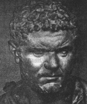 Термы Каракаллы. Следующий, 3 век, прошел для Рима в обстановке постепенно развивающегося кризиса, гражданских войн, насильственной гибели многих императоров. Удерживать власть в подобных условиях могли только люди очень жестокие, суровые, и это не замедлило сказаться на трактовке образов правителей на официальных портретах. Теперь глубина психологической характеристики достигается не тщательной и мастерской отделкой, а лаконичным отбором нескольких основных черт портретируемого. Обобщенная лепка лица позволяет сосредоточить внимание на волевом взгляде, на твердо сжатой линии губ. Таков, к примеру, портрет Филиппа Аравитянина (хранится в Эрмитажей - "солдатского" императора, приведенного к власти римскими легионами. Жутковатое впечатление оставляет портрет Каракаллы, с поразительной силой раскрывающий перед нами образ человека жестокого и грубого, за свой исключительно свирепый нрав снискавшего славу одного из самых ужасных римских тиранов.