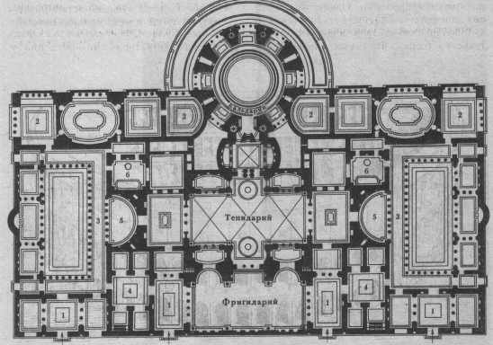 Впрочем, при всех своих недостатках Каракалла заботился о римлянах и, в частности, выстроил для них обширные общественные термы - вторые по размерам в Риме. Каракалла тоже постарался размахнуться, подобно Адриану, и, помимо ванн и бассейнов, устроил в термах специальные площадки для физических упражнений, места для отдыха и бесед, библиотеку и даже магазин.