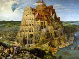 Брейгель писал "Вавилонскую башню" по крайней мере три раза. Сохранились Вавилонская башня (1563) и "Малая" Вавилонская башня (ок.1563). Гигантское строение было запечатлено дважды. Никогда ранее не удавалось художникам передать так живо чудовищную величину башни, размах строительства, превосходящего все ранее известное человеку.