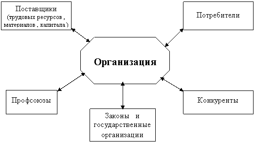 Как уже говорилось выше , на деятельность организации влияют внутренняя и внешняя среда организации . Организациям приходится приспосабливаться к изменениям внешней среды и соответствующим образом осуществлять внутренние изменения для того , чтобы выжить и сохранить свою эффективность .
