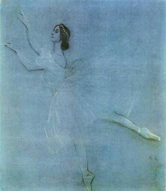 Портрет балерины А.П.Павловой 1909 бумага голубая, уголь, мел 194*170 Государственный Русский Музей