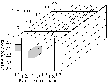 Так, клетка 1.3.-2.3. (заштрихована) - означает модель процесса разработки стратегических планов производства продукции (те, модель процесса планирования стратегического портфеля заказов);